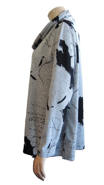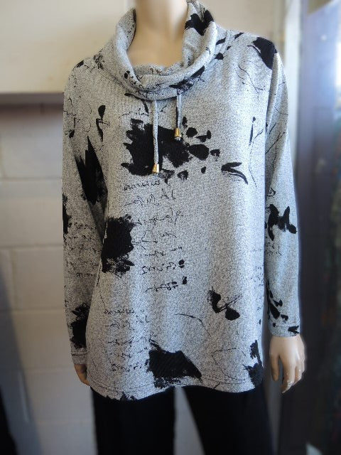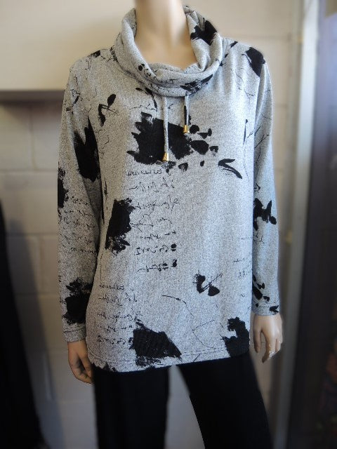 Warmer feel yet light in weight stretch poly/spandex top with a cowl neckline. This top has side splits at the side hemline.