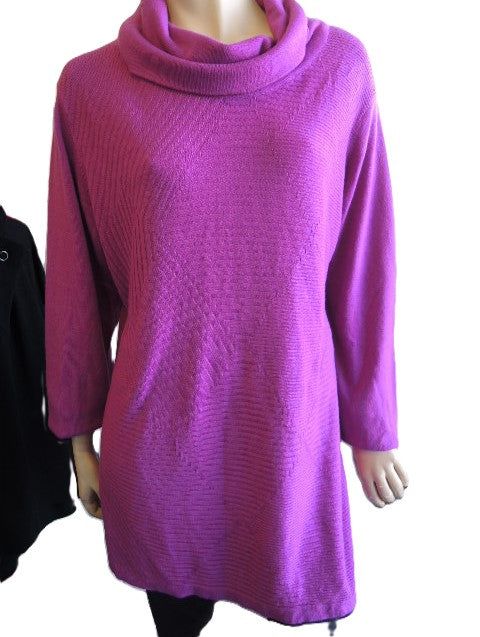 Soft cashmere feel acrylic knit jumper with a cowl neckline and a self colour diamond knit design on the front.